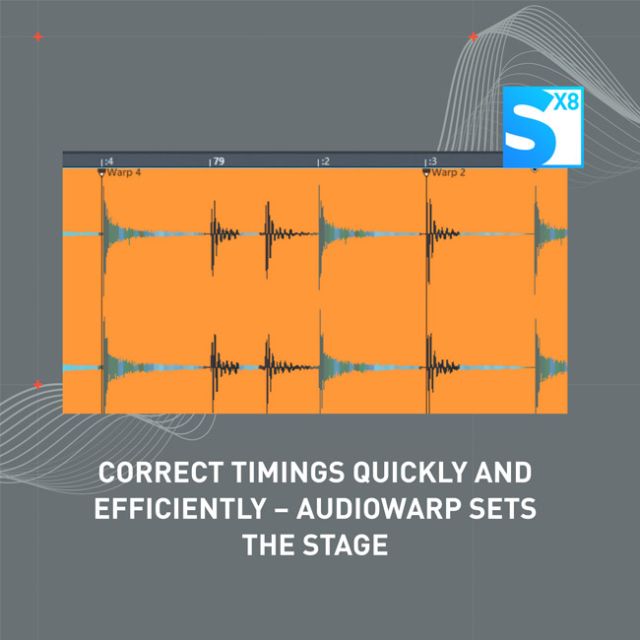 • AudioWarp - AudioWarp lets you get the most out of your tracks and makes expensive, time-consuming post-production at the end of a day in the studio unnecessary. Correct the timing of your audio seamlessly and access individual parts at any time if you need to. Advanced time-stretch algorithms ensure excellent sound quality and let you deliver perfect results in no time at all – regardless of whether the band is still in the studio, or already back on the stage.