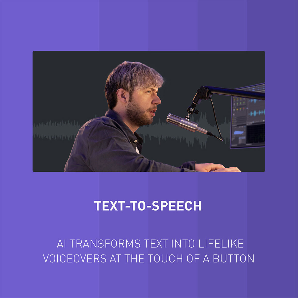 Transform text into lifelike voiceovers at the touch of a button using AI - and translate them into up to 70 languages. For everyone who works with text, from content and podcast creators to voice actors.
