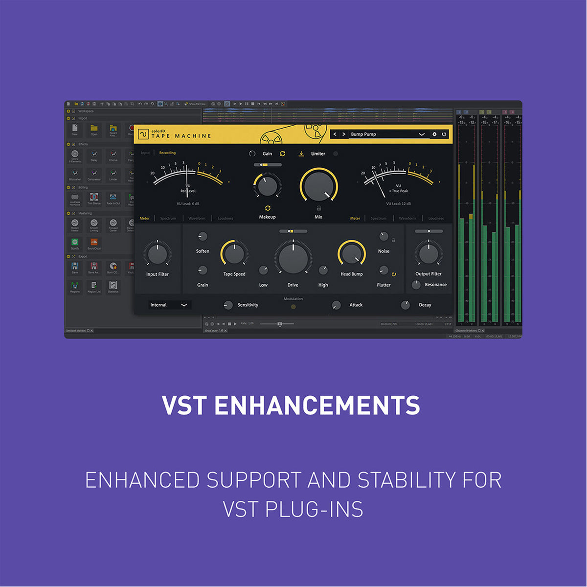Expanded support for VST plug-ins for increased performance, compatibility and stability. Use more of your favorite VST extensions without sacrificing performance for an even better and faster workflow.