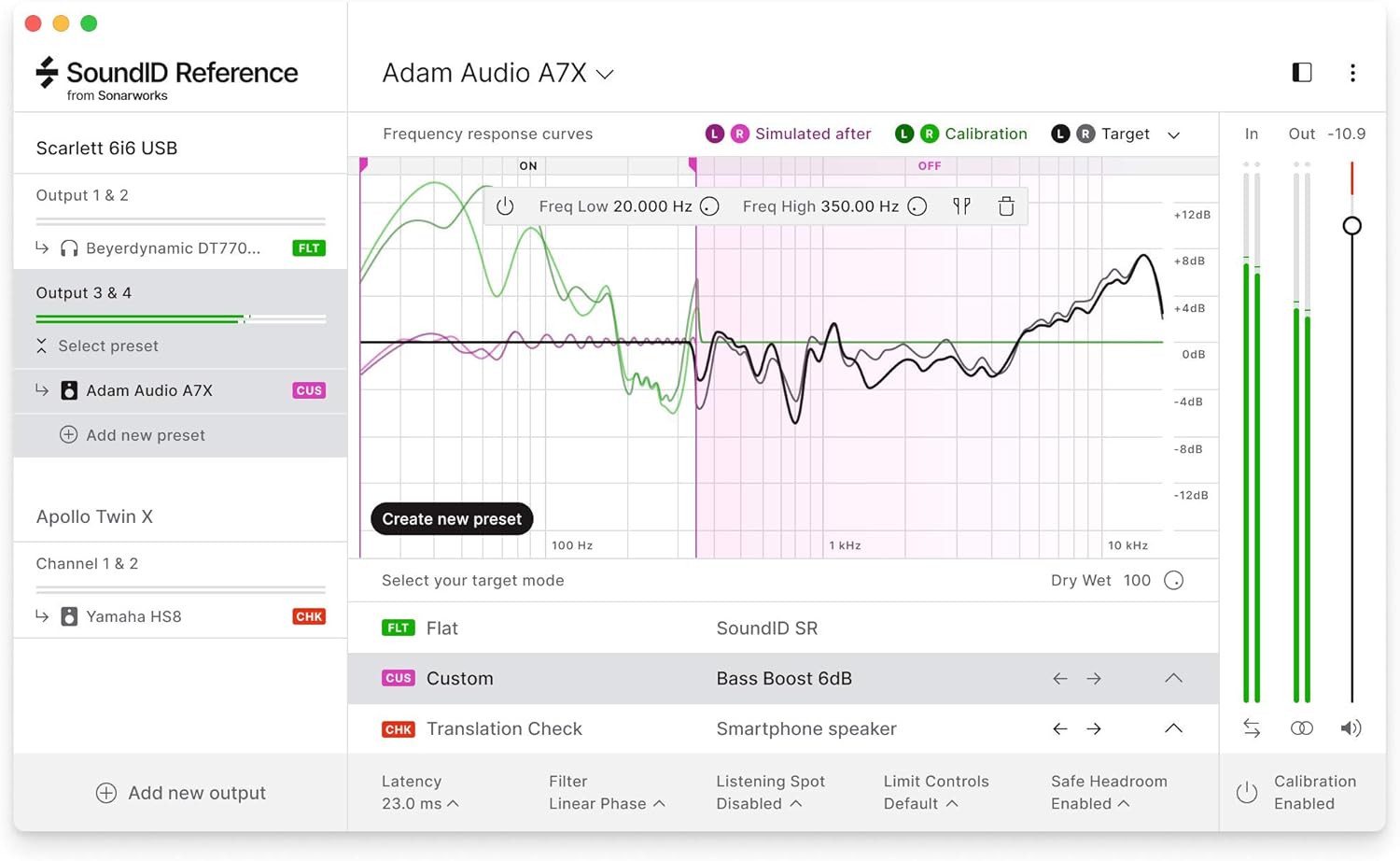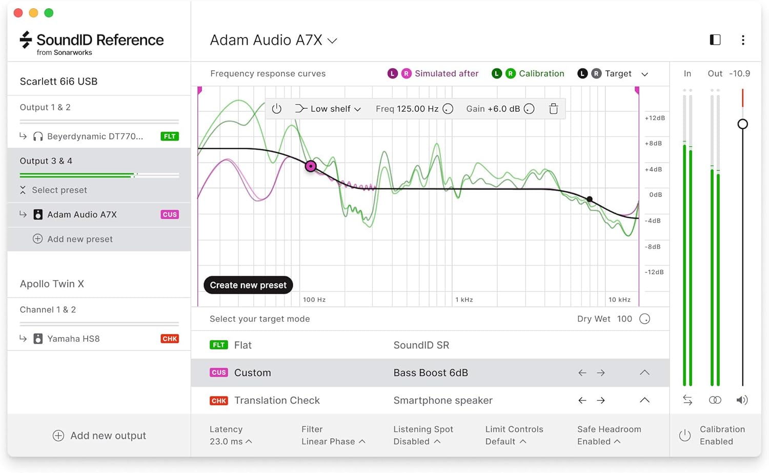 Calibrating your headphones with SoundID Reference is a piece of cake. Just fire up the software, load up one of its more than 280 ready-to-use headphone calibration profiles, and you're good to go. SoundID Reference's calibration profiles create a target frequency response that's flat across all audible frequencies. It's almost like you're listening on a neutral-sounding set of top-of-the-line speakers.