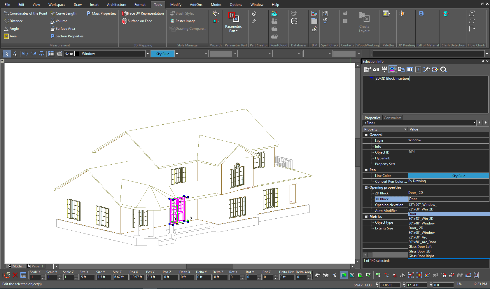 Configure smart architectural objects by selecting them and easily modifying their parameters. This intuitive approach allows you to update dimensions and specifications on the fly, ensuring that your design stays flexible and precise.